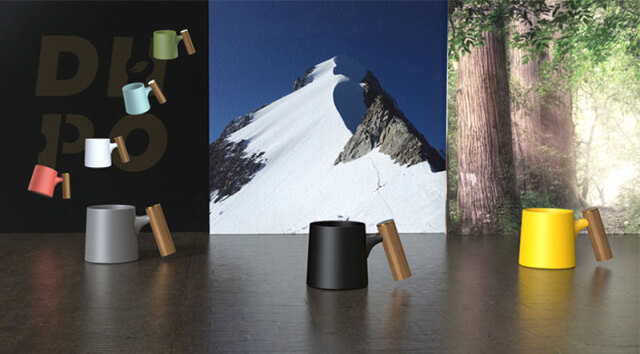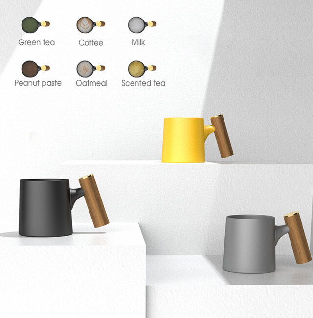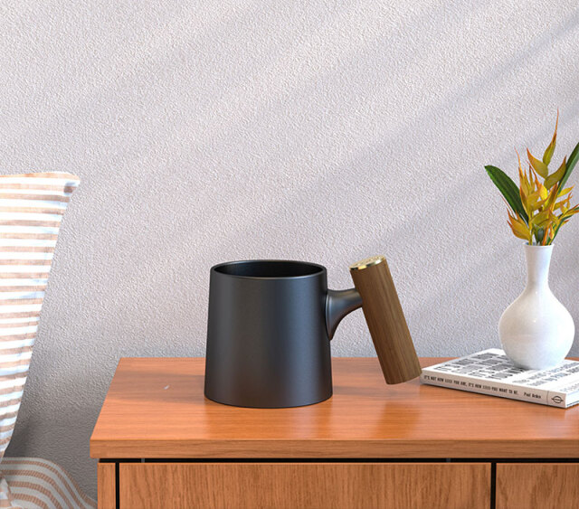 高温焼成セラミックでデザインした機能性に優れ木製ハンドルがお洒落な最高級セラミックコーヒーマグカップ