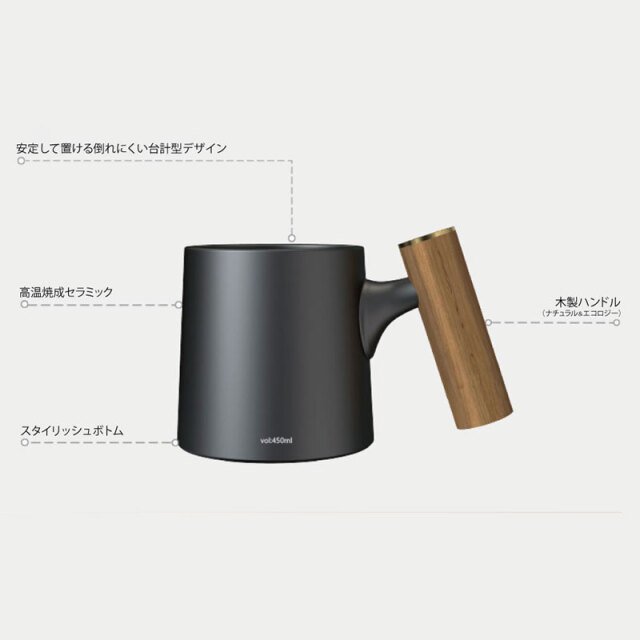 木製ハンドル付きセラミックコーヒーマグカップ(ブラック)内容