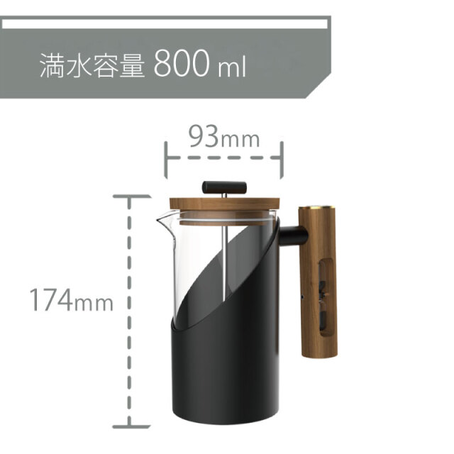 【数量限定】 DHPO フレンチプレス コーヒープレス ブラック ステンレス プランジャー 木製 砂時計 800ml コーヒー 珈琲
