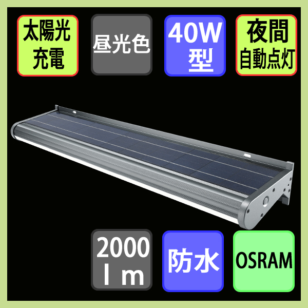 ソーラー街路灯 ソーラー 街灯 人感センサー 40w 太陽光LED 夜間自動点灯 昼光色(ポール別売)