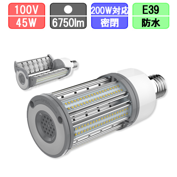 水銀灯用コーン型LED E39 電球色 昼白色 45wで6750lm 密閉・防水対応 LED 水銀灯200w相当 コーンライト